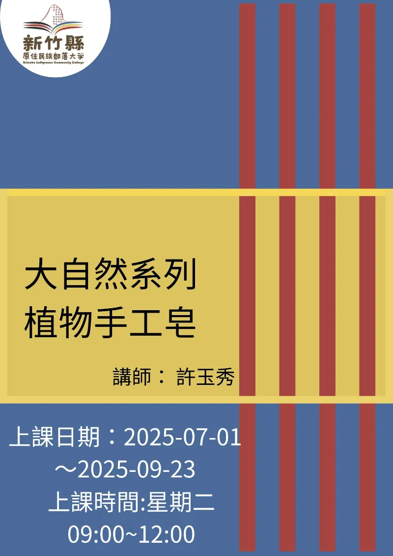 本課程旨在引導學員深入了解草本植物與天然手工皂製作的核心概念,結合植物科學與手工藝術,讓學員掌握製作手工皂的基本技術與創新設計理念,融入自然草本元素,創造兼具功能性與美感的產品。課程設計以「學以致用」為核心,將理論與實務緊密結合,幫助學員在掌握草本植物特性與應用知識的同時,熟練各種手工皂製作技法與創意設計,提升學員的美學素養和實用能力。