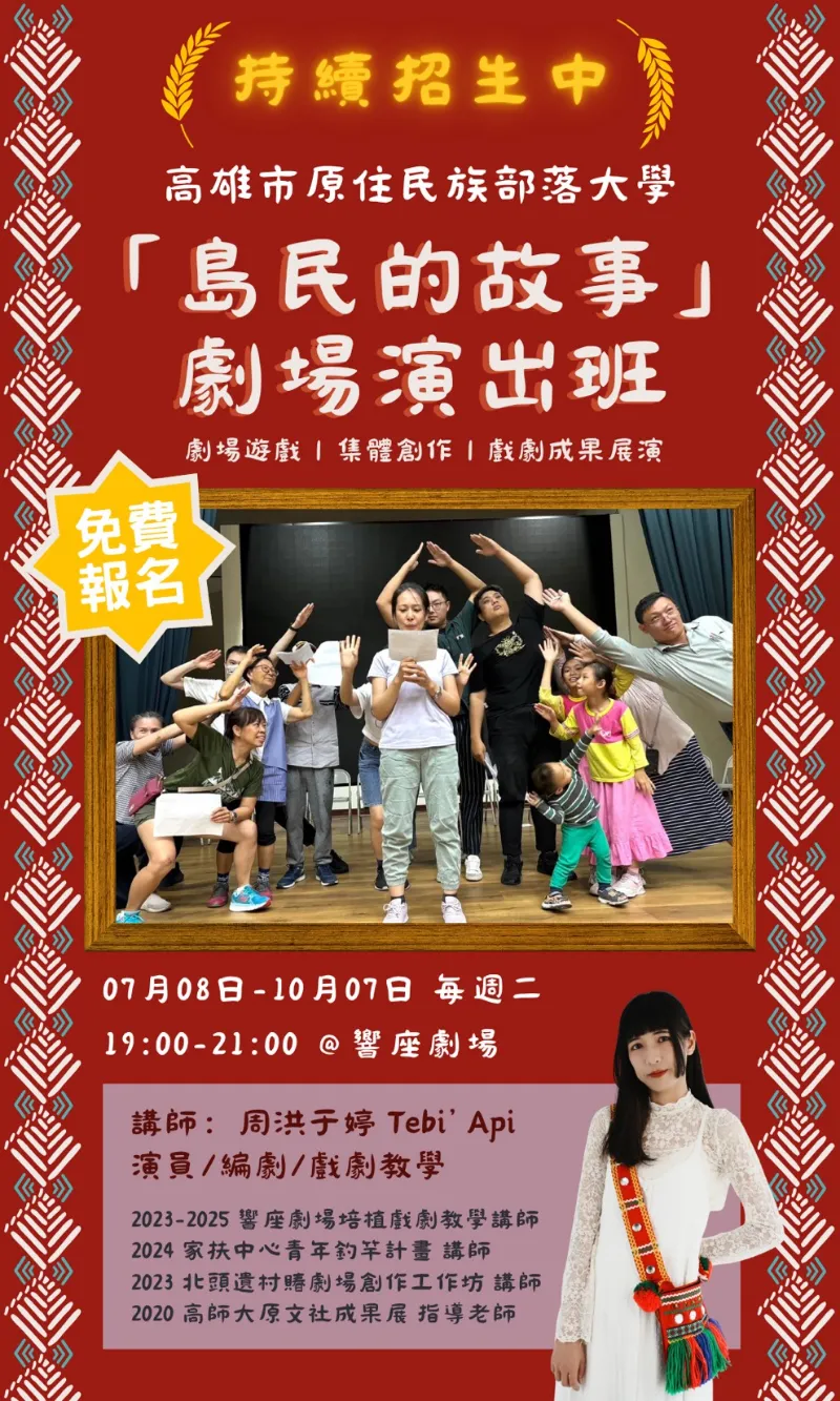 2023至今 新莊高中話劇社 指導老師 2024 高雄春天藝術節《光之路》 演員 2024 家扶中心x響座劇場《釣竿計畫》 講師 2024 賦格音樂文化事業《小小音樂大師課》 說書人 2023 高雄城市書展x響座劇場《爺爺的奇幻旅程》 導演 2023 六藝樂集x響座劇場《飄泊人生》 執行導演 2023 著鹿計畫《北頭遺賰-tsun劇場創作工作坊》 講師 2022 豆子劇團《我的大俠》 演員 2021 聚炬創作體《東村夜遊》 編劇 2019 高師大原文社《我的世界不住在日記裡》 導演