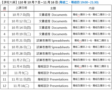 六、課程一覽表:若因疫情影響,得採取混成教學模式(實體教學和線上教學)進行。