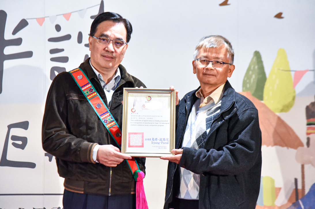 原住民族委員會於今 (23)日在臺中市舉辦「112年度部落學童遠距伴讀」計畫成果發表會,今年度部落學童的整體成績進步幅度達70%以上,由夷將·拔路兒Icyang·Parod主任委員親自頒贈112年度部落學童遠距伴讀計畫獎狀及證書,嘉勉參與遠距伴讀之小學友學業進步之表現及表彰大學友輔導老師、部落社區、教會、原住民族家庭服務中心等15個服務據點之貢獻,現場聚集參與本計畫的大學友及部落小學友等受獎者150人,共襄盛舉。
