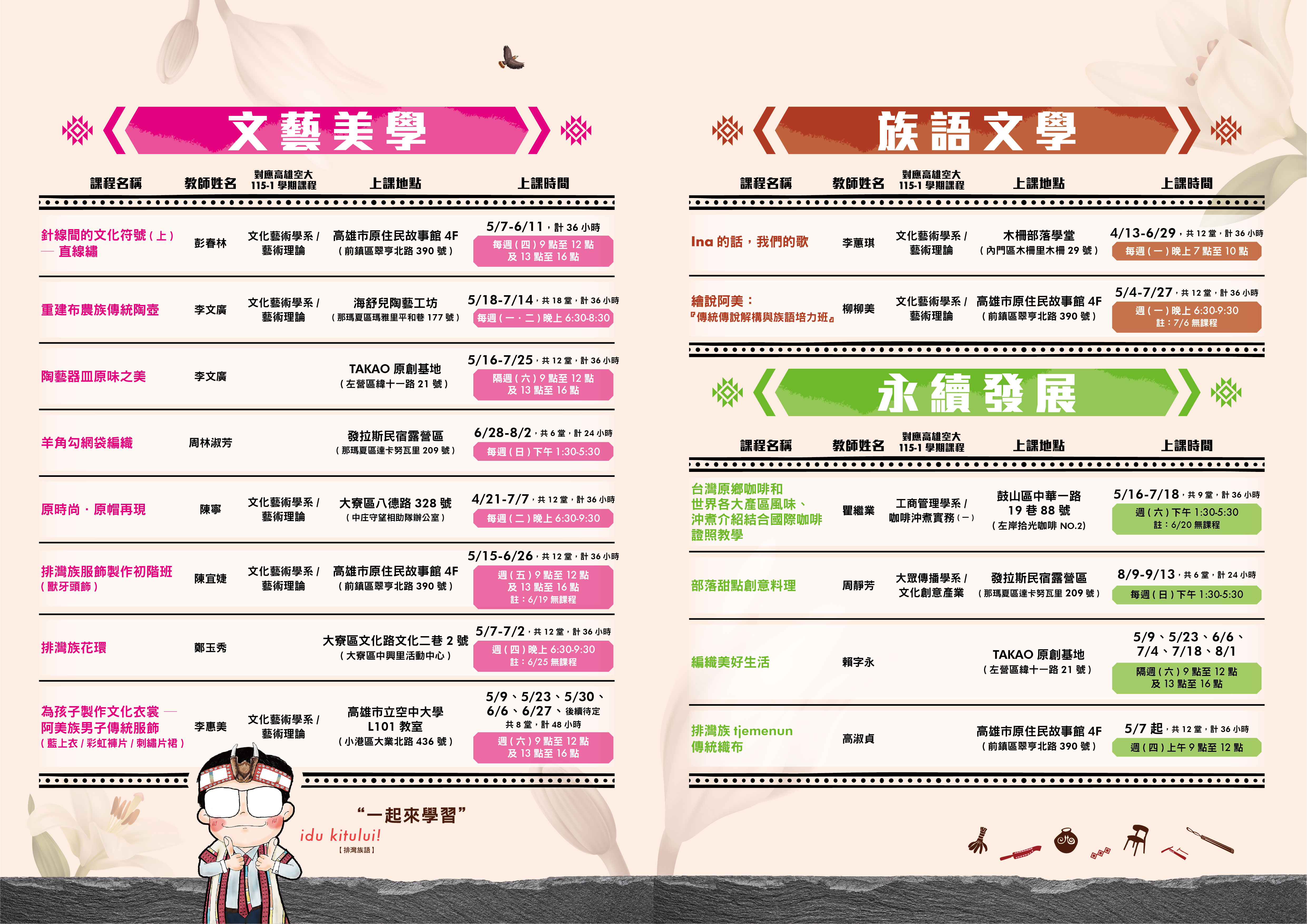 公告【115年】高雄市原住民族部落大學研習類課程招生簡章,詳參附件。