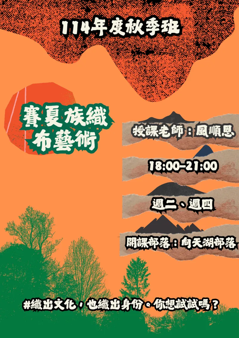 利用較簡單且便利的織帶機,讓學員可以在百忙之中學習賽夏織紋與了解組織圖,以便未來可以進階學習擁有一個屬於自己織帶或是服飾。