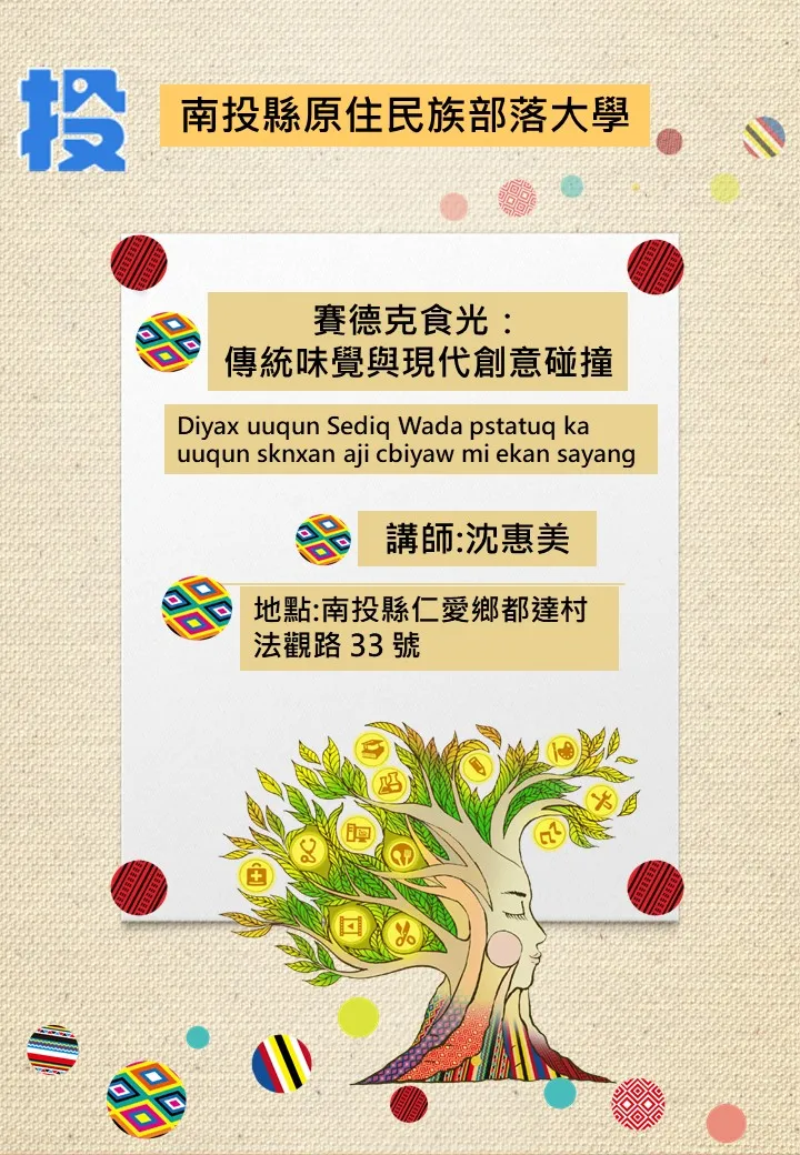我們將從基礎料理技巧開始,製作如烤山豬肉、野菜湯等經典賽德克料理,並學習如何運用天然調味料如山胡椒等增添風味。學員將掌握