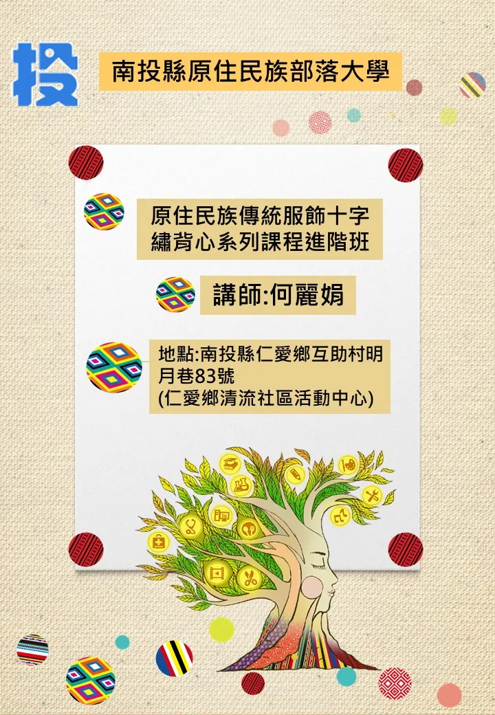 原住民族傳統服飾十字繡背心系列課程進階班 Ngayan slhayan: Psnakun slhayan plpingan snais ptpaan lukus Pesing Yencumingcu rudan cbeyo( rriqu tikuh)
