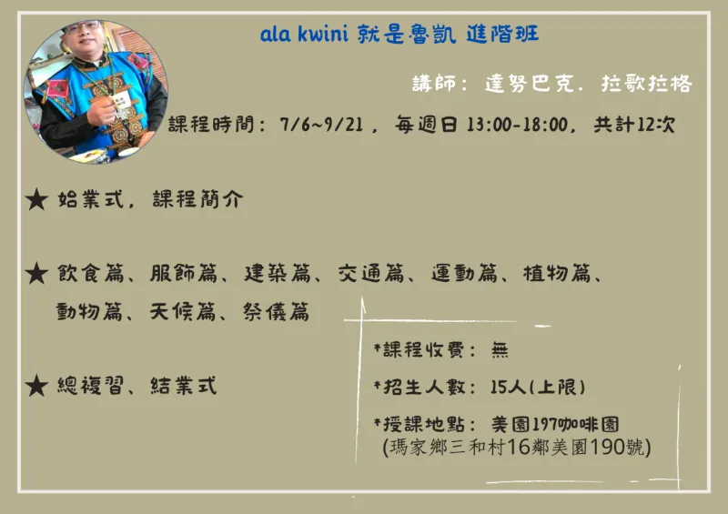 1. 增加學員個人魯凱語詞彙量,預備對話時可使用的單詞。