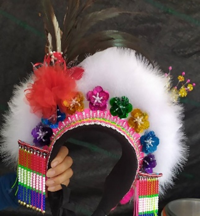1、重建族人女性傳統羽冠帽。